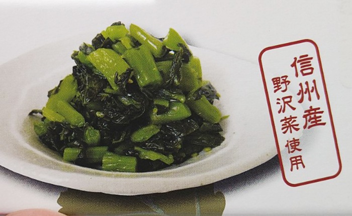 北アルプスの伏流水仕込、信州産の野沢菜使用の野沢菜わさび漬け、きらずにそのまま盛り付けできます。