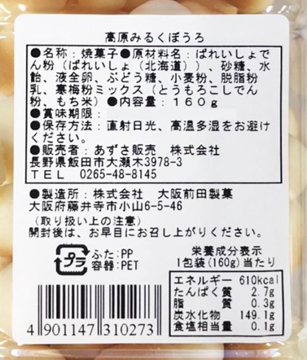 高原みるくぼうろ 信州長野のお土産お菓子