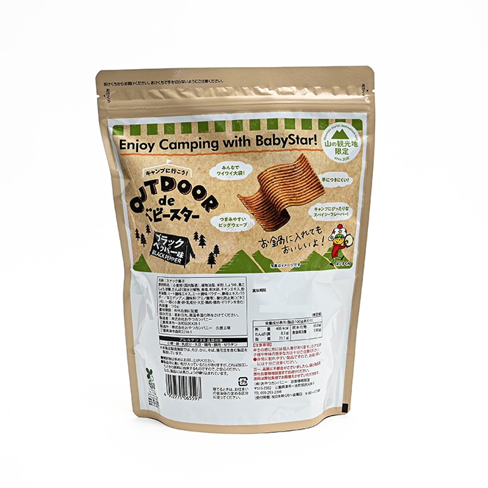 山の観光地限定アウトドアでベビースターブラックペッパー味