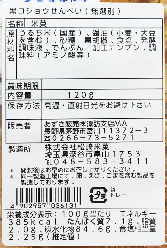 うまい黒こしょう無選別(信州長野県のお土産 お菓子 お煎餅)