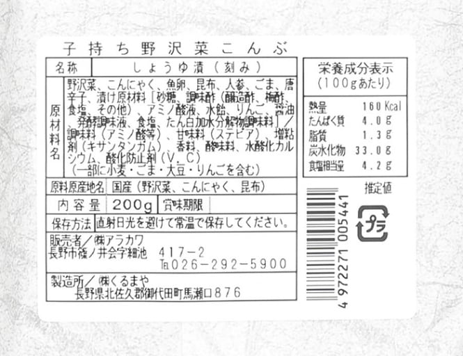 子持ち野沢菜こんぶ A