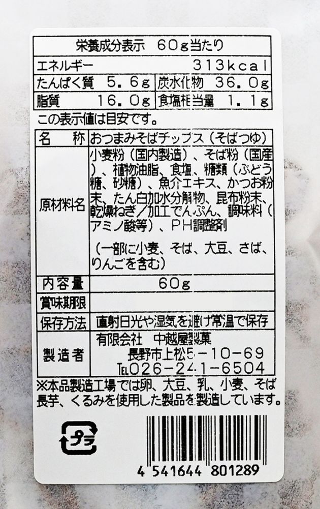 名称/おつまみそばチップス(そばつゆ)