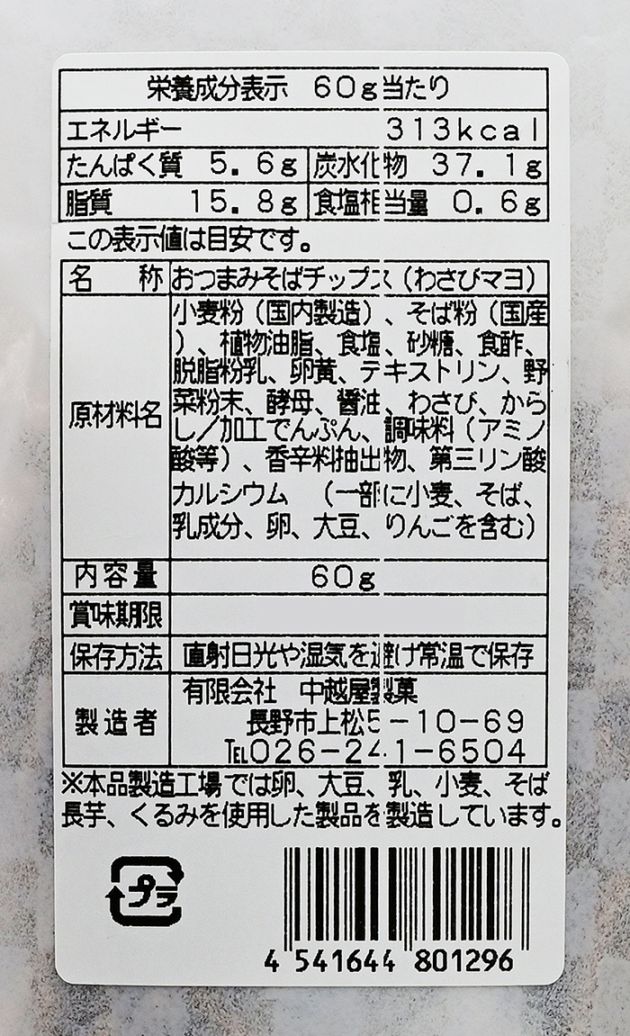 名称/おつまみそばチップス(わさびマヨ)