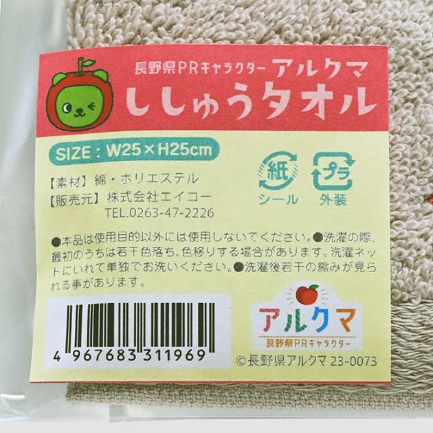 (信州長野のお土産 長野県 長野土産 長野お土産 かわいい ご当地キャラクター アルクマ 刺繍タオル 刺しゅうタオル お取り寄せ ギフト おみやげ 雑貨 文具 通販)