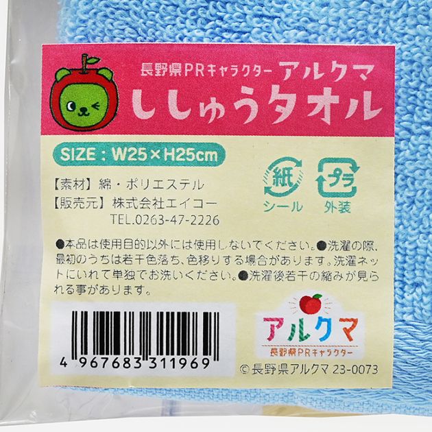 (信州長野のお土産 長野県 長野土産 長野お土産 かわいい ご当地キャラクター アルクマ 刺繍タオル 刺しゅうタオル お取り寄せ ギフト おみやげ 雑貨 文具 通販)
