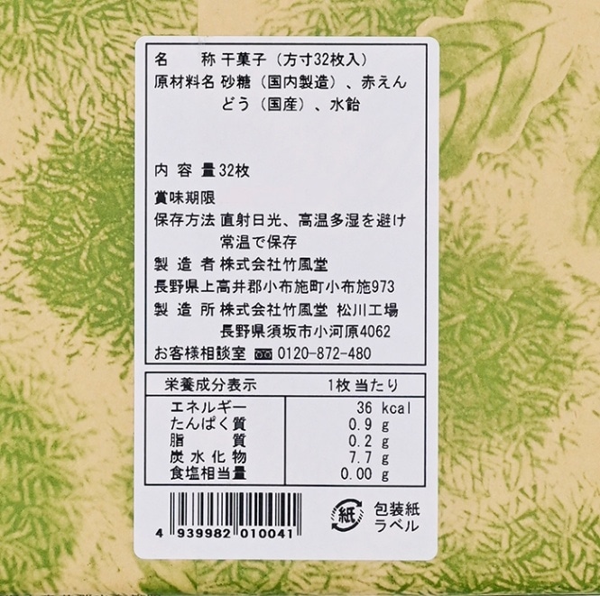 竹風堂方寸32枚入【信州長野小布施のお土産】