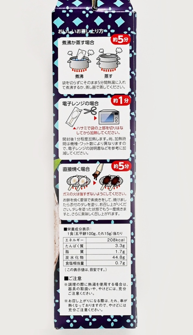 100%うるち米のみを使用した無添加の自然食品です。ふるさとの懐かしの味、レンジで温めてタレを塗るだけで出来上がり