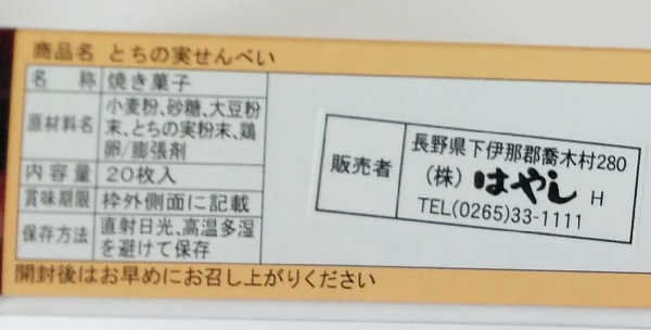 とちの実せんべい箱 賞味期限/製造日より約150日 (信州長野のお土産 お菓子 特産品 お惣菜 お取り寄せ ご当地 グルメ ギフト 土産 おみやげ 長野県 長野土産 長野お土産 お中元 お歳暮 通販)
