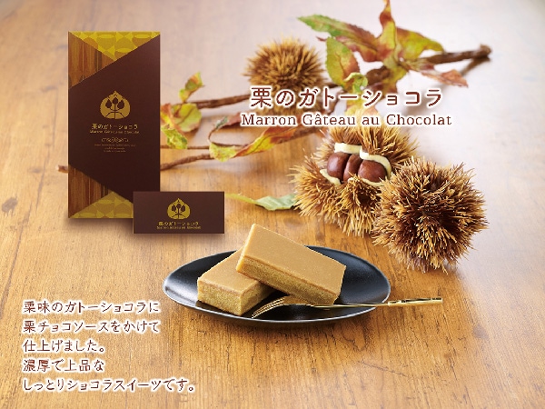栗味のガトーショコラに栗チョコソースをかけて仕上げました。濃厚で上品なしっとりショコラスイーツです