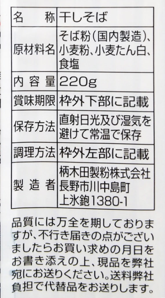 原材料/そば粉(国内製造)、小麦粉、食塩、今麦たん白