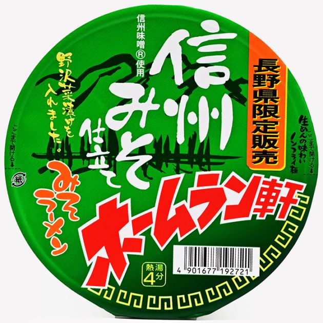 信州みそと野沢菜漬けを使用した長野県限定のご当地カップラーメンのホームラン軒信州味噌ラーメンです