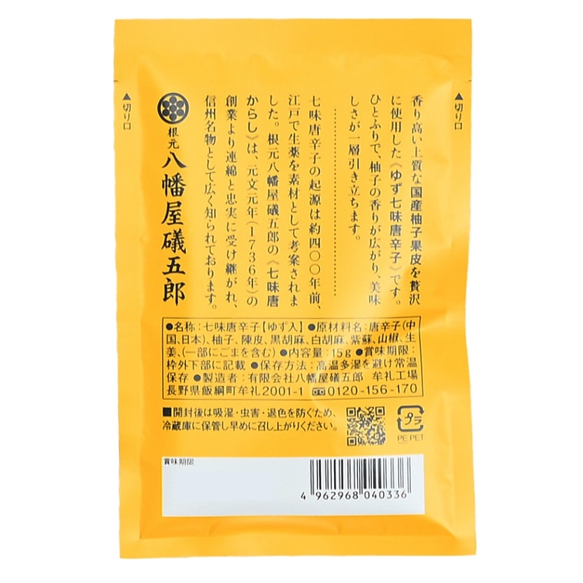 信州長野のお土産で人気の八幡屋礒五郎の七味唐辛子商品。 「中辛」に柚子を加えました。 鍋物やお味噌汁にひと振りすると、 柚子の香りが広がりおいしさが一層引き立ちます。