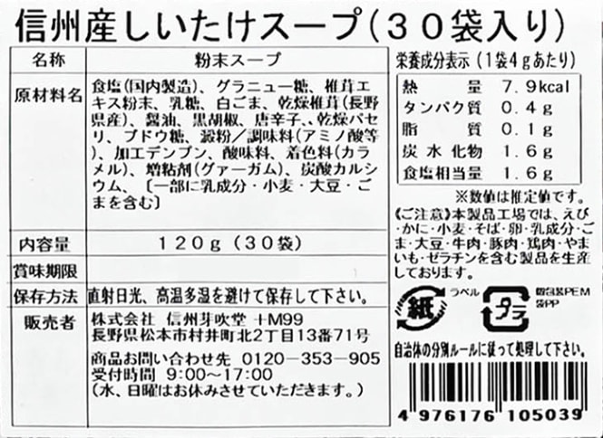 信州産しいたけスープ30袋入