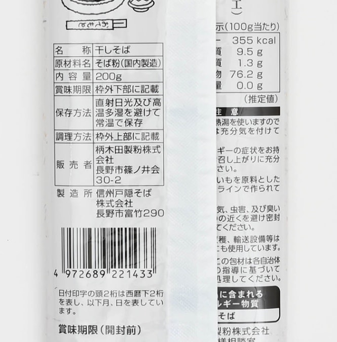 原材料/そば粉(国内製造)