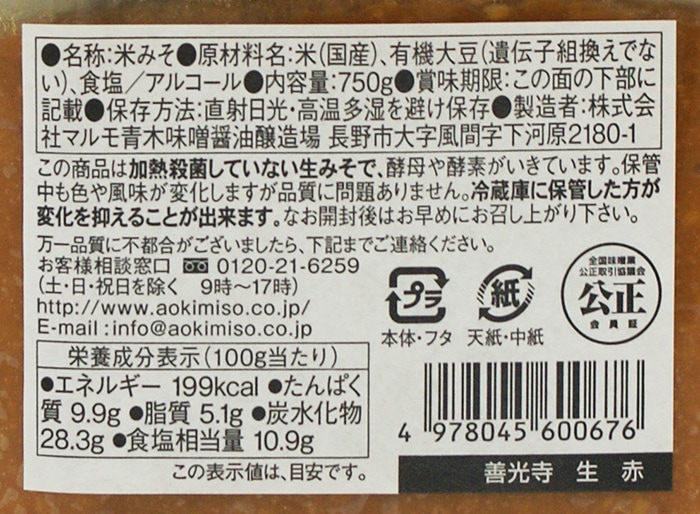 善光寺生赤 信州青木 味噌