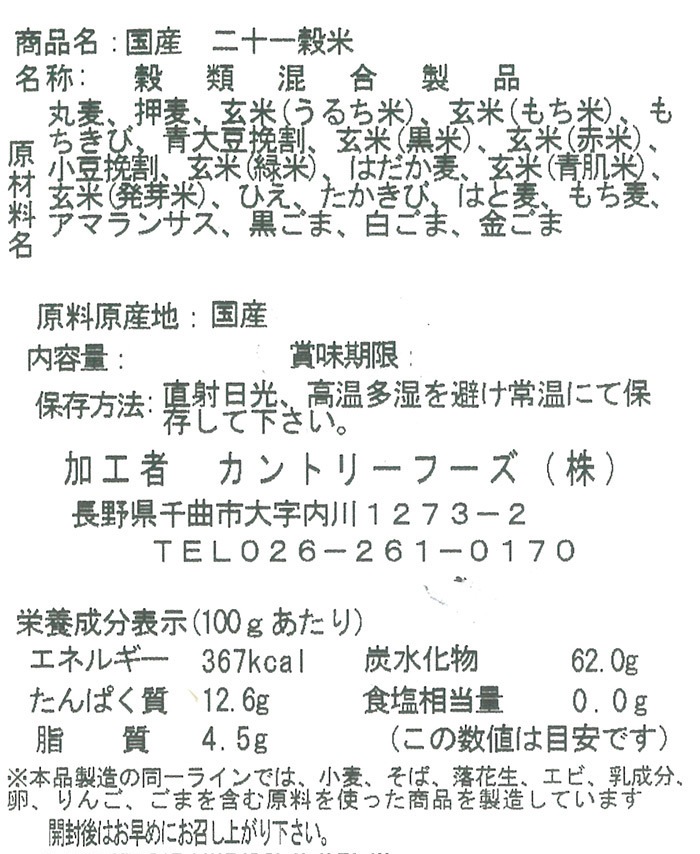 国産 二十一穀米 大520g 信州長野のお土産