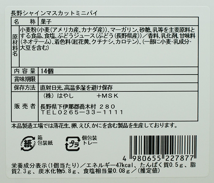 長野シャインマスカットミニパイ14個入(信州長野県のお土産 お菓子 お取り寄せ スイーツ ギフト)