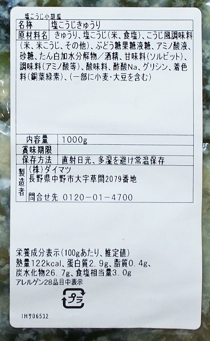 名称/塩こうじきゅうり
