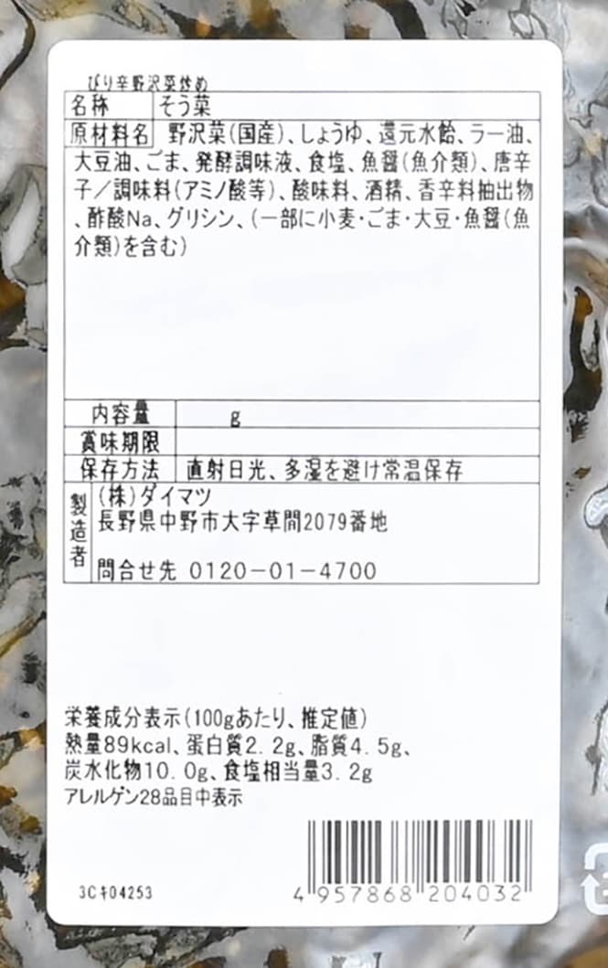 豊かな風味と多彩な味わい ぴり辛野沢菜炒め 信州長野のお土産お惣菜