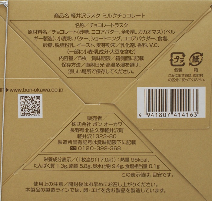 軽井沢ラスク ミルクチョコレート(10月から4月)(信州長野県軽井沢のお土産 お菓子 お取り寄せ ご当地 スイーツ ギフト)