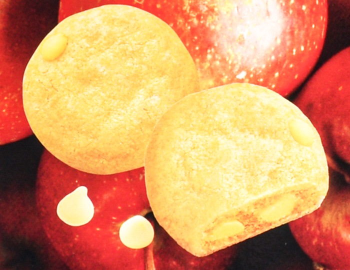 小麦粉(国内製造)、植物油脂、砂糖、チョコレートチップ(乳成分、大豆を含む)、還元水あめ、卵、白ねりあん(乳成分を含む)、全脂大豆粉、りんごパウダー、水あめ、脱脂粉乳、りんごジャム、食塩、卵黄(卵を含む)、でん粉(小麦を含む)/加工デンプン、乳化剤(乳・大豆由来)、トレハロース、糊料(加工デンプン、増粘多糖類:りんご由来)、香料、膨張剤、カロテノイド色素、酸味料