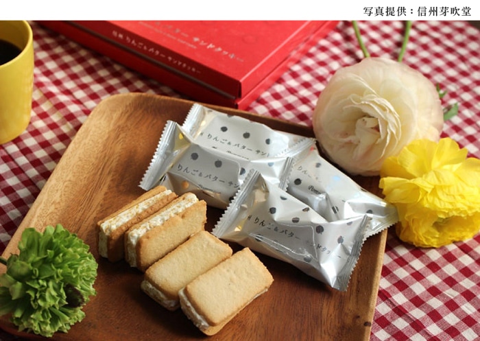 信州産りんごを使用した焼き林檎風味のクリームを使ったバターサンドクッキー