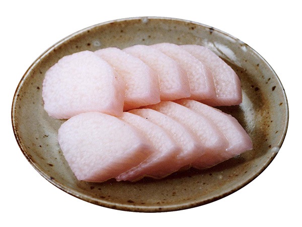 原材料名/ながいも、漬け原材料〔糖類(砂糖、果糖ぶどう糖液糖)、醸造酢、食塩、梅酢〕、酸味料、香料、調味料(アミノ酸等)、着色料(ベリー、シソ、赤102)、(原材料の一部に小麦を含む)