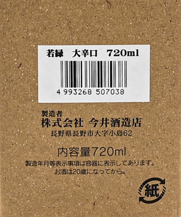 本醸造清酒 若緑 大辛口 720ml