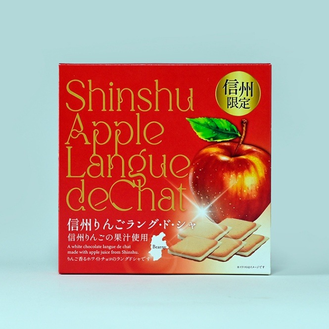バターや卵白のふわふわ感と信州りんごの味がマッチした「りんごラングドシャ」は、焼き色とクリームの果汁風味が魅力です。
