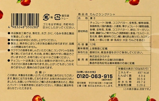 信州産りんごの果汁使用 りんごラングドシャ12枚入