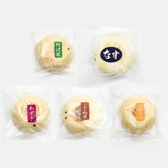 内容量/1個×5種類(野沢菜・しめじ野菜・あずき・かぼちゃ・なす)