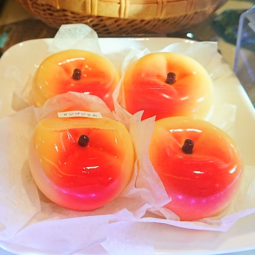 りんごのミニチュアみたいなかわいいお菓子、信州産りんご使用したりんごジャム入りのお饅頭です
