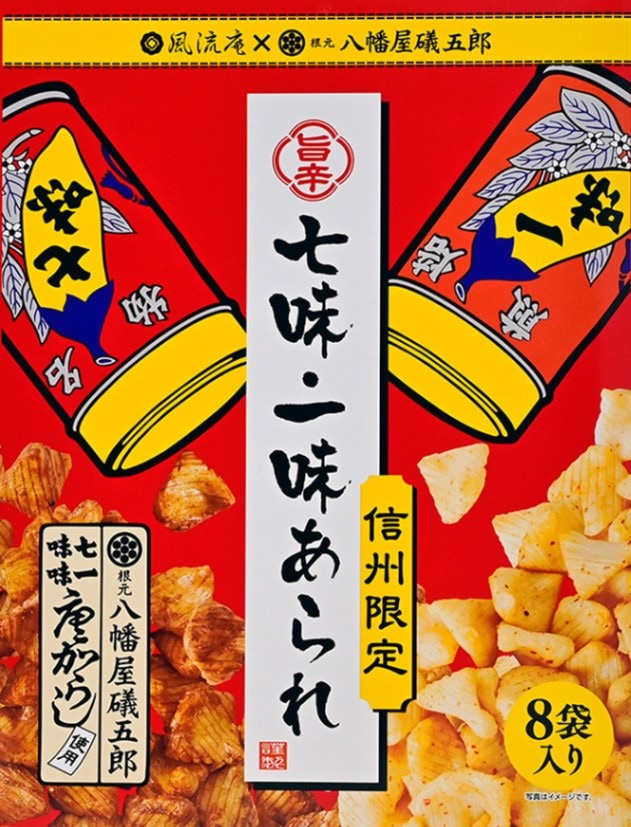 信州限定 旨辛七味・一味あられ 8袋入 根元八幡屋礒五郎七味唐からし使用(信州長野県のお土産 お菓子 お煎餅 七味唐辛子)