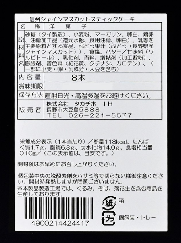 信州シャインマスカットスティックケーキ8本入 大 信州長野のお土産