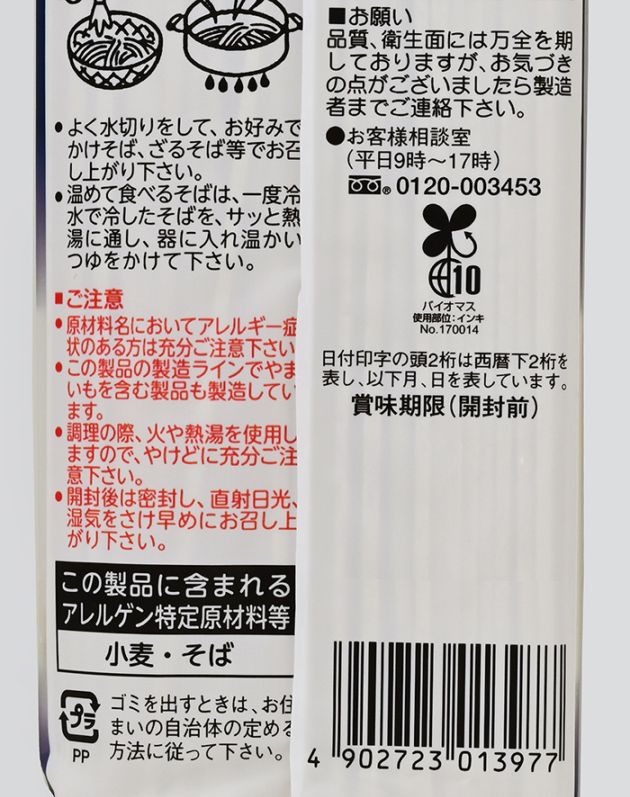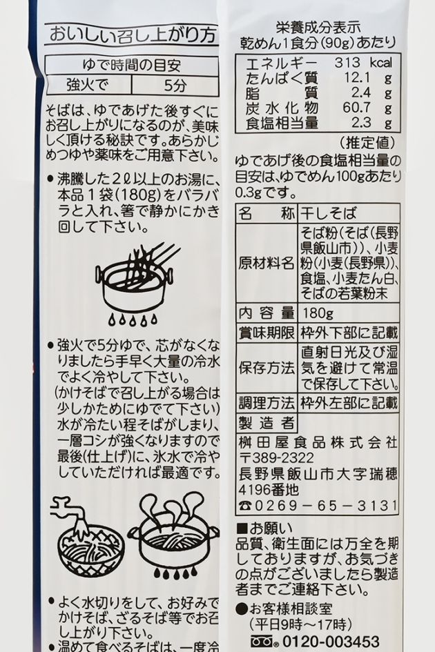 原材料/そば粉(そば(長野県飯山産))、小麦粉(小麦(長野県))、食塩、小麦たん白、そばの若葉粉末