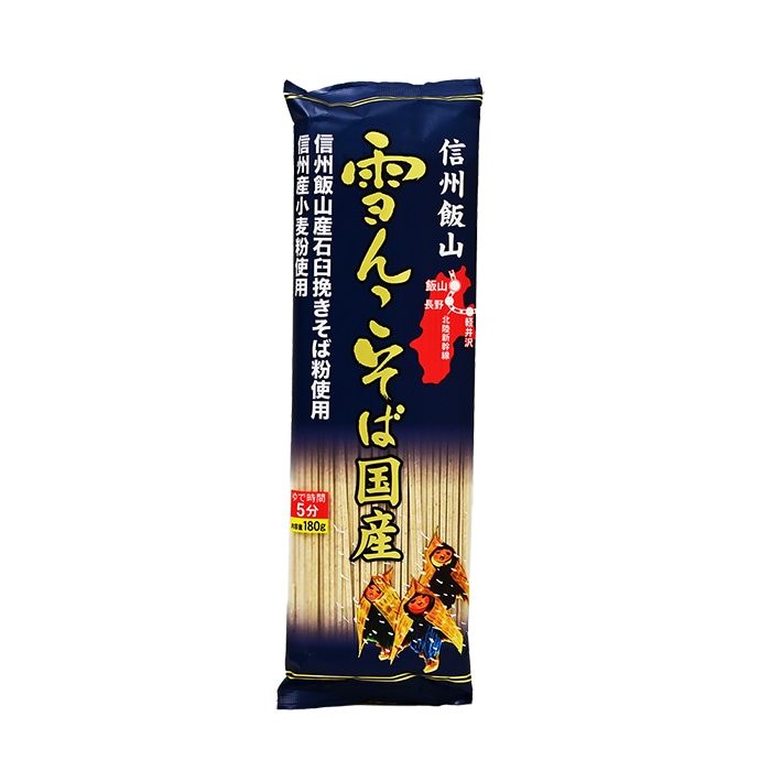 信州飯山産石臼挽きそば粉使用、信州産小麦粉使用した雪ん子そばです