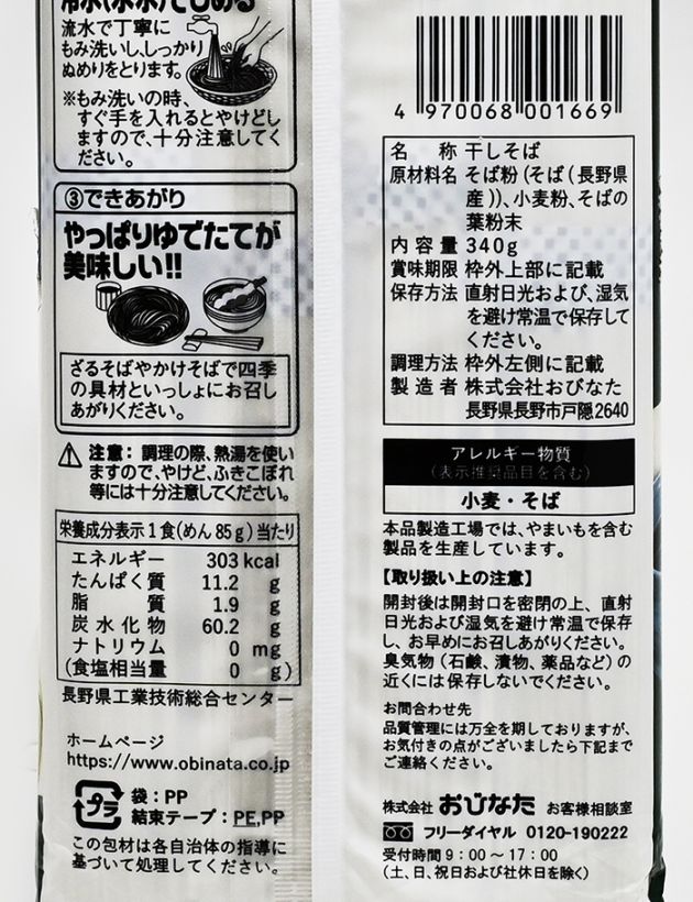 原材料/そば粉(そば(長野県産))、小麦粉、そばの葉粉末