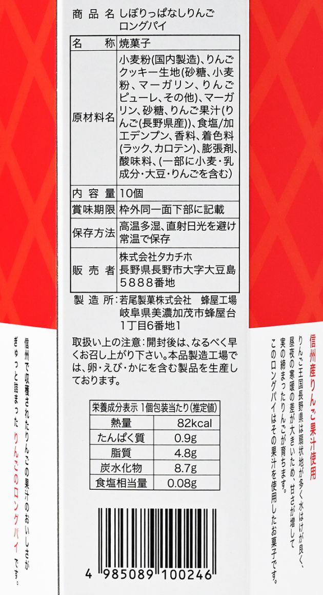 信州産りんご果汁使用しぼりっぱなしロングパイ 10個入 信州長野のお土産