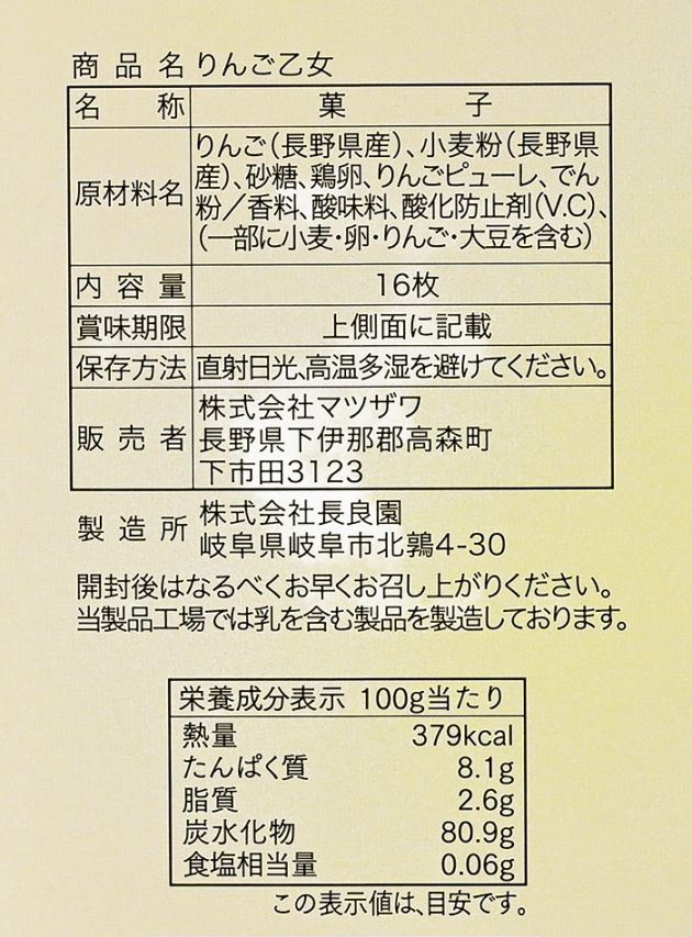 りんご乙女16枚入×5箱 信州長野のお土産
